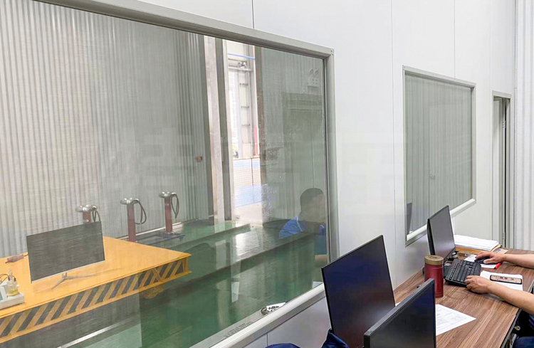 (5)面向試驗(yàn)區(qū)的一側(cè)為雙框雙玻屏蔽觀(guān)察窗,觀(guān)察窗規(guī)格約寬2.2m×高1.5m,中間夾20目φ0.27mm不銹鋼絲屏蔽網(wǎng),豎向布置并垂直繃直,施工時(shí)保持等距,或采用更佳的方案,達(dá)到美觀(guān),視覺(jué)良好。屏蔽網(wǎng)兩端與窗框中角鋼焊牢;窗框與接地系統(tǒng)有可靠的電氣連接。
